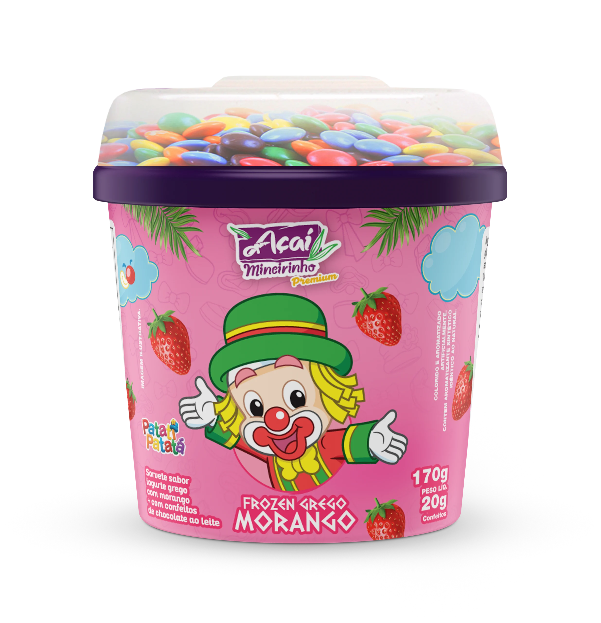 Açaí Mineirinho Premium – Patati Patatá – Frozen Grego Morango + Confete – 190g